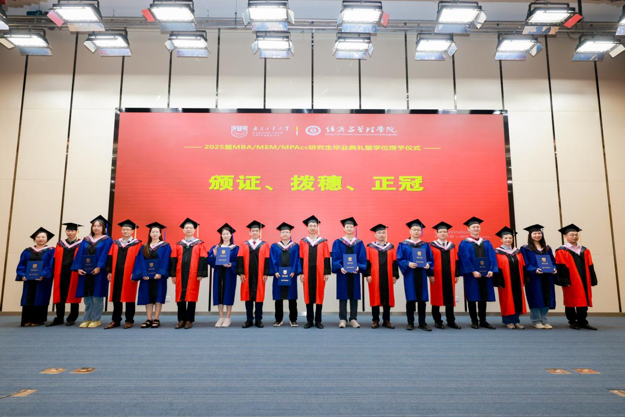 七月的浦园,夏木葱茏,生机盎然。19日上午,2025届MBA、MEM、MPAcc研究生毕业典礼暨学位授予仪式在弘毅楼顺利举行!研究生院经理潘勇、公司党委书记陈同扬、经理姚山季、副经理吴斌、副经理张长江、MBA/MEM/MPAcc教育中心主任李宏贵、中心副主任王万竹、导师代表张琳教授、张家峰副教授、庄雷副教授、员工代表江苏省冷链供销有限公司总经理/江苏省苏瑞建设发展有限公司总经理马永军、教育中心老师和到场的毕业生以及毕业生家属130余人欢聚一堂,共同庆祝这一美好而荣耀的时刻。毕业典礼由太阳成集团122ccvip副经理张长江主持。