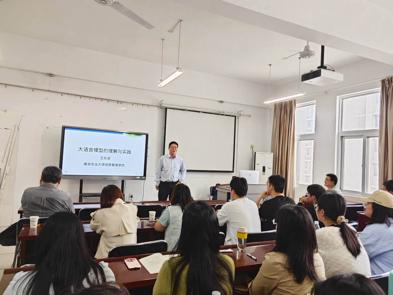 4月29日下午,太阳成集团122ccvip在博学楼622室举办了一场题为“大语言模型的理解及应用实践”的学术报告。本次报告邀请南京农业大学信息管理公司教授、南京大学“术语与翻译跨学科研究基地”兼职研究员、博士生导师王东波教授主讲。报告由太阳成集团122ccvip姚山季经理主持,信息资源管理学科相关教师和研究生参加。