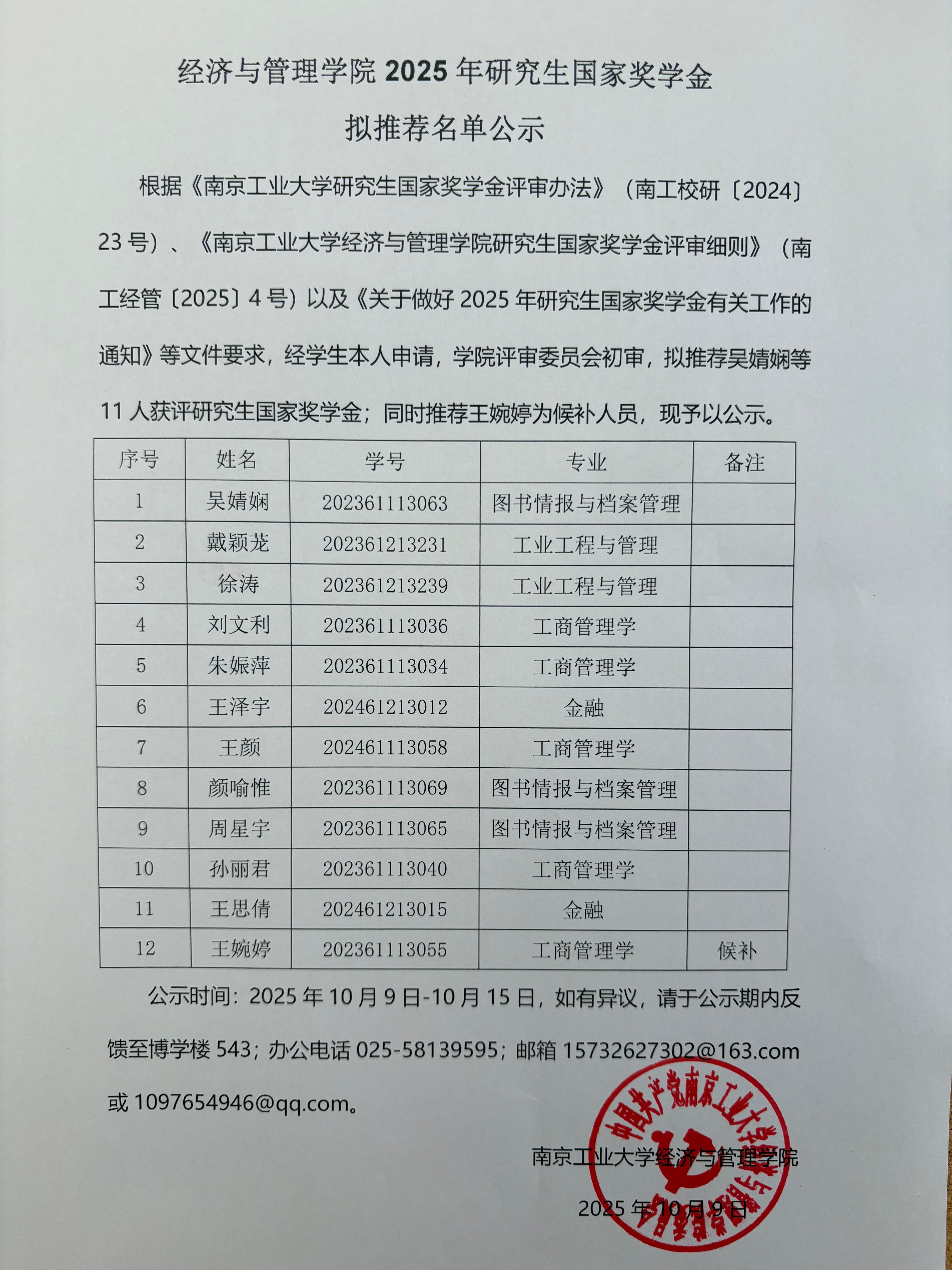 太阳成集团122ccvip2025年度研究生国家奖学金初审名单公示