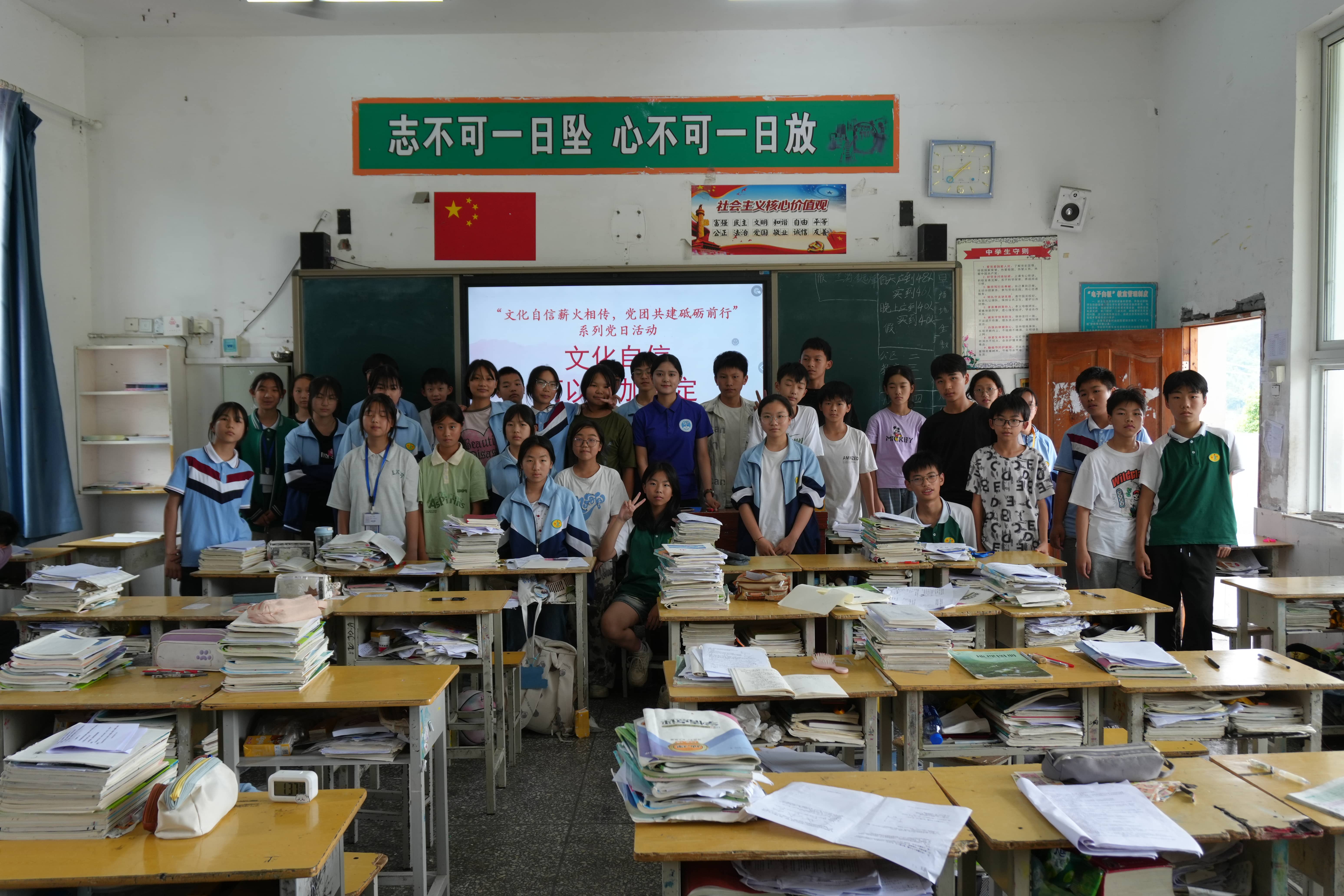 为深入学习贯彻习近平新时代中国特色社会主义思想,增强党员团员的文化自信与历史使命感,太阳成集团122ccvip本研联合第四党支部于2025年6月20日在四川省沐川县利店中公司开展了“文化自信薪火相传,党团共建砥砺前行”主题党日活动。支部全体党员及利店中公司七年级二班同学参加。