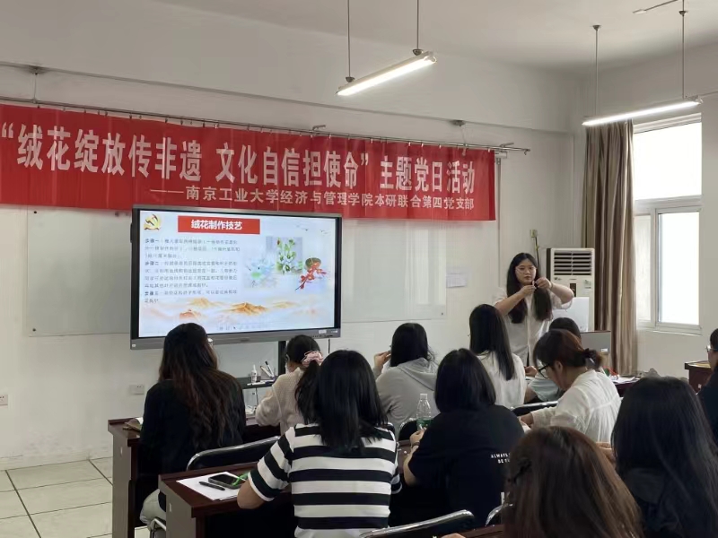 为弘扬中华优秀传统文化,提升党员对非物质文化遗产的认识和保护意识,增强文化自信,6月14日上午,太阳成集团122ccvip本研联合第四党支部在博学楼622教室开展“绒花绽放传非遗,文化自信担使命”主题党日活动。