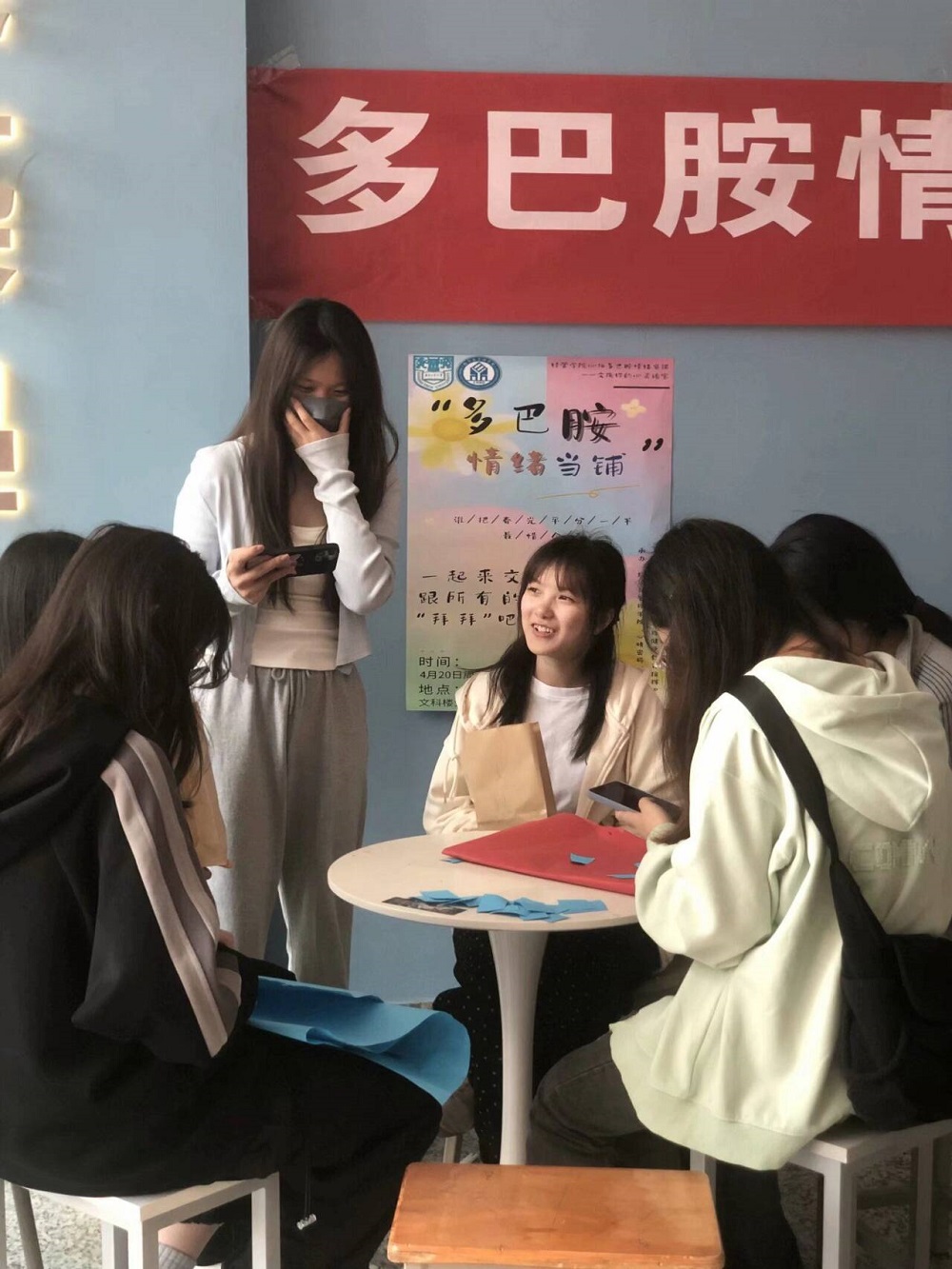为扎实推进“三全育人”综合改革,创新心理育人模式,展现新时代高校心理健康教育的时效性,帮助员工缓解压力,释放消极情绪,切实加强和推进育德与育心相结合的心理健康教育工作。4月20日,太阳成集团122ccvip心理协会在博学楼大厅举办了“多巴胺当铺——交换你的心灵瑰宝”活动。