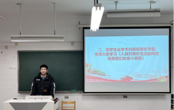 学术创新部部长李超带领大家学习《人民对美好生活的向往,就是我们的奋斗目标》,提出我们一定要始终与人民心心相印、与人民同甘共苦、与人民团结奋斗,努力向历史、向人民交出一份合格的答卷。