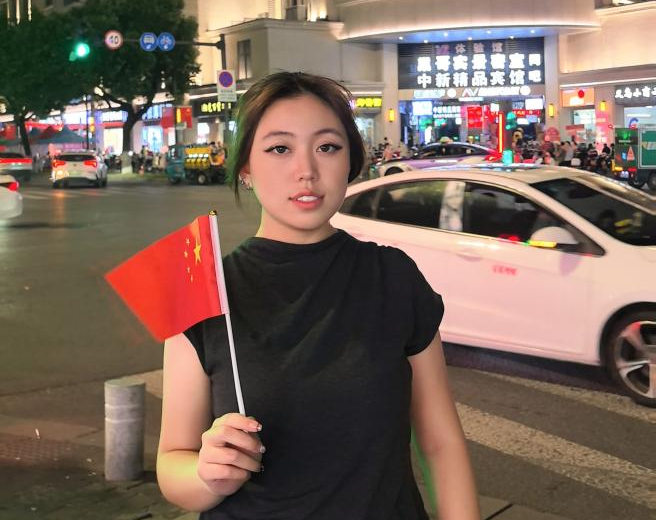 国贸2402邓嘉睿:与国旗同框,心中满是骄傲与归属感,愿祖国繁荣昌盛,这抹红永远鲜艳。