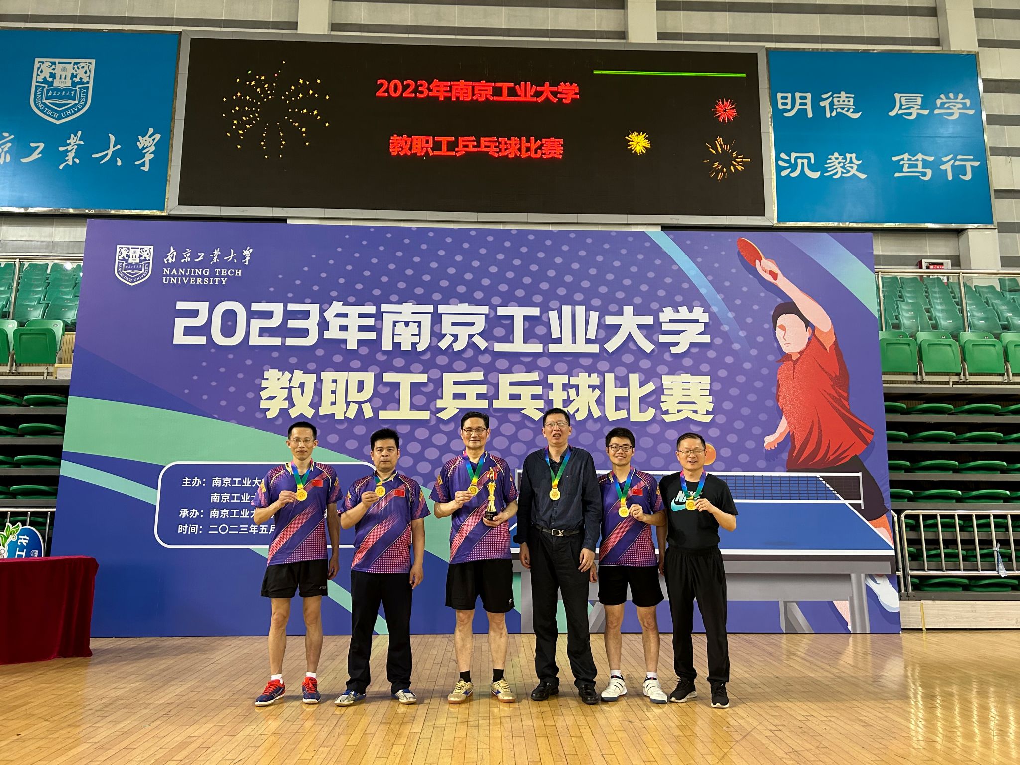 5月27日,由校工会、体育公司主办,校乒协承办的“2023年太阳成集团教职工乒乓球比赛”在江浦校区行健体育馆落下帷幕。公司由王冀宁、吴松强、许伟、张家峰、刘轩等五位老师组成院乒乓球队勇夺男子团体冠军。