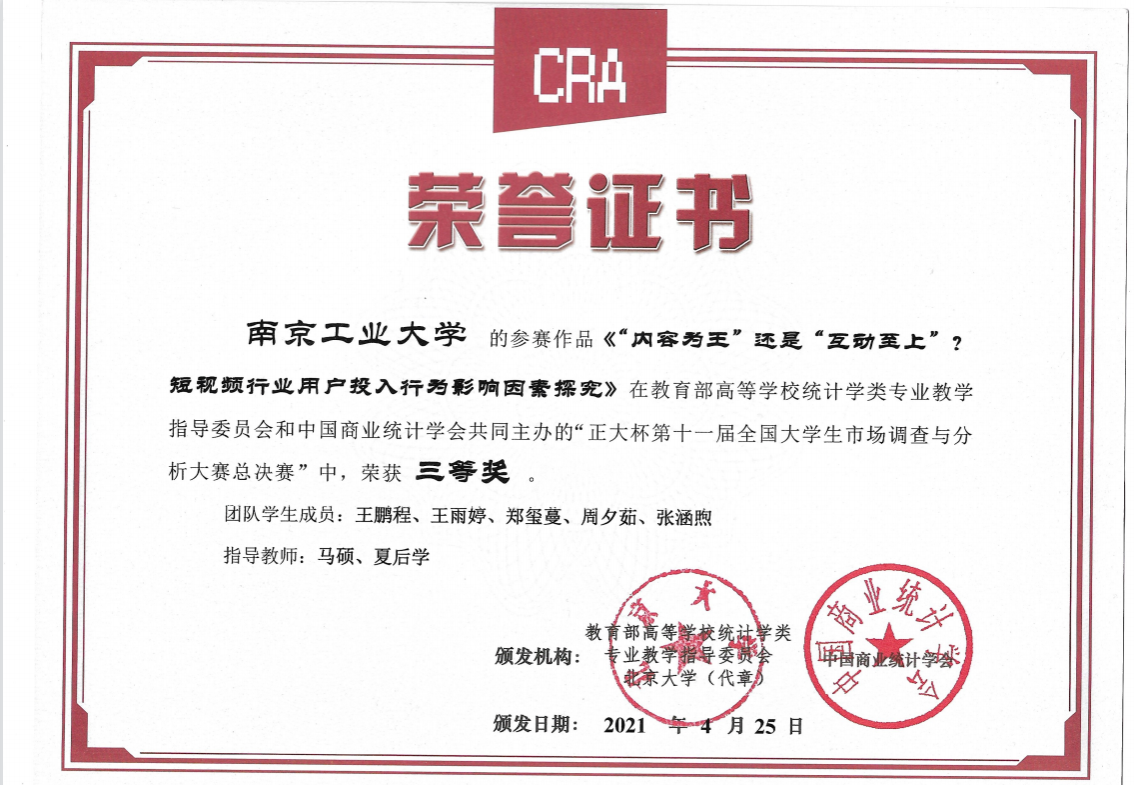 参赛内容以“短视频”内容为核心延伸,经过与队友们以及指导老师的商讨后确认为“内容为王还是互动至上——短视频行业用户投入行为调查研究”。但在数据分析阶段,沮丧、懊恼、焦躁的情绪一丝丝潜入这个团队,可是王鹏程与他的队员们从未放弃,大家搜起百度、问起知乎……互相打着鸡血,每天不断探讨尝试运行程序。“操千曲而后晓声,观千剑而后识器”,王鹏程团队需要的数据结果出来了!
