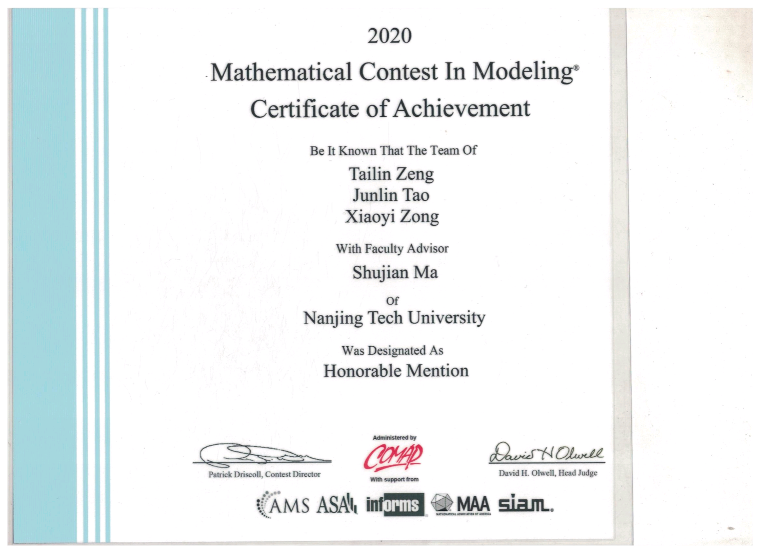 她,曾获2020美国老员工数模竞赛二等奖、江苏省老员工工程管理创新创业与实践竞赛二等奖、江苏省高等公司第十六届高等数学竞赛三等奖……