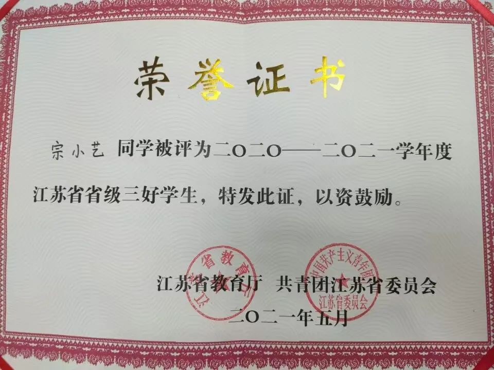 她,曾获2020年度江苏省三好员工,是第四届江苏省老员工知识产权知识竞赛优秀志愿者,是暑期社会实践先进个人……