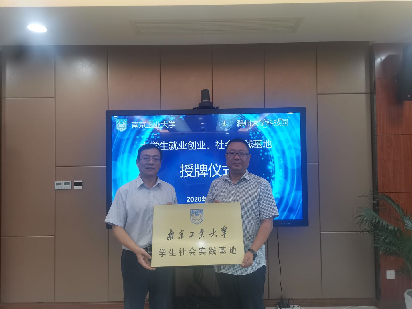 在充分的沟通了解之后,孙书记与张主任分别代表公司和滁州大学科技园签订了《太阳成集团就业创业实习实践基地建设协议书》、《员工实践基地共建协议书》并进行授牌仪式。