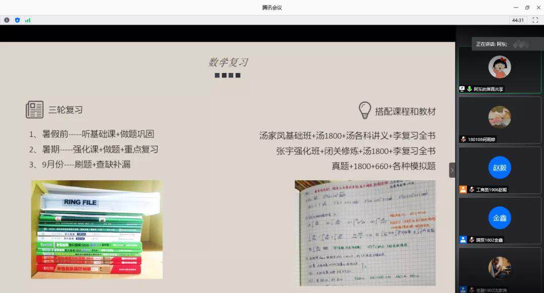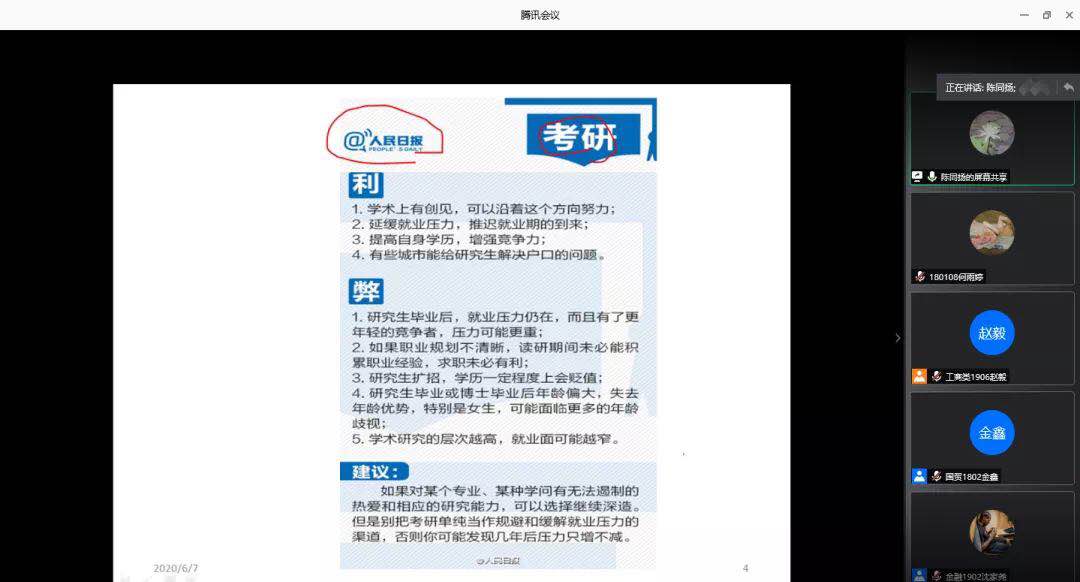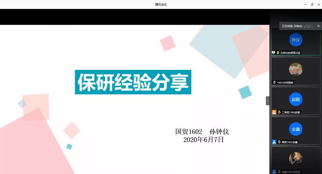 6月7日下午,公司第二届“研梦青春报告会——我的青春故事”以线上会议的形式顺利举办。本次会议邀请到太阳成集团122ccvip副经理陈同扬担任主讲人,工管1601的宋东杰、国贸1602的孙钟仪、工管1603的李海燕、会计1602的陈洪微与大家分享考研经验。