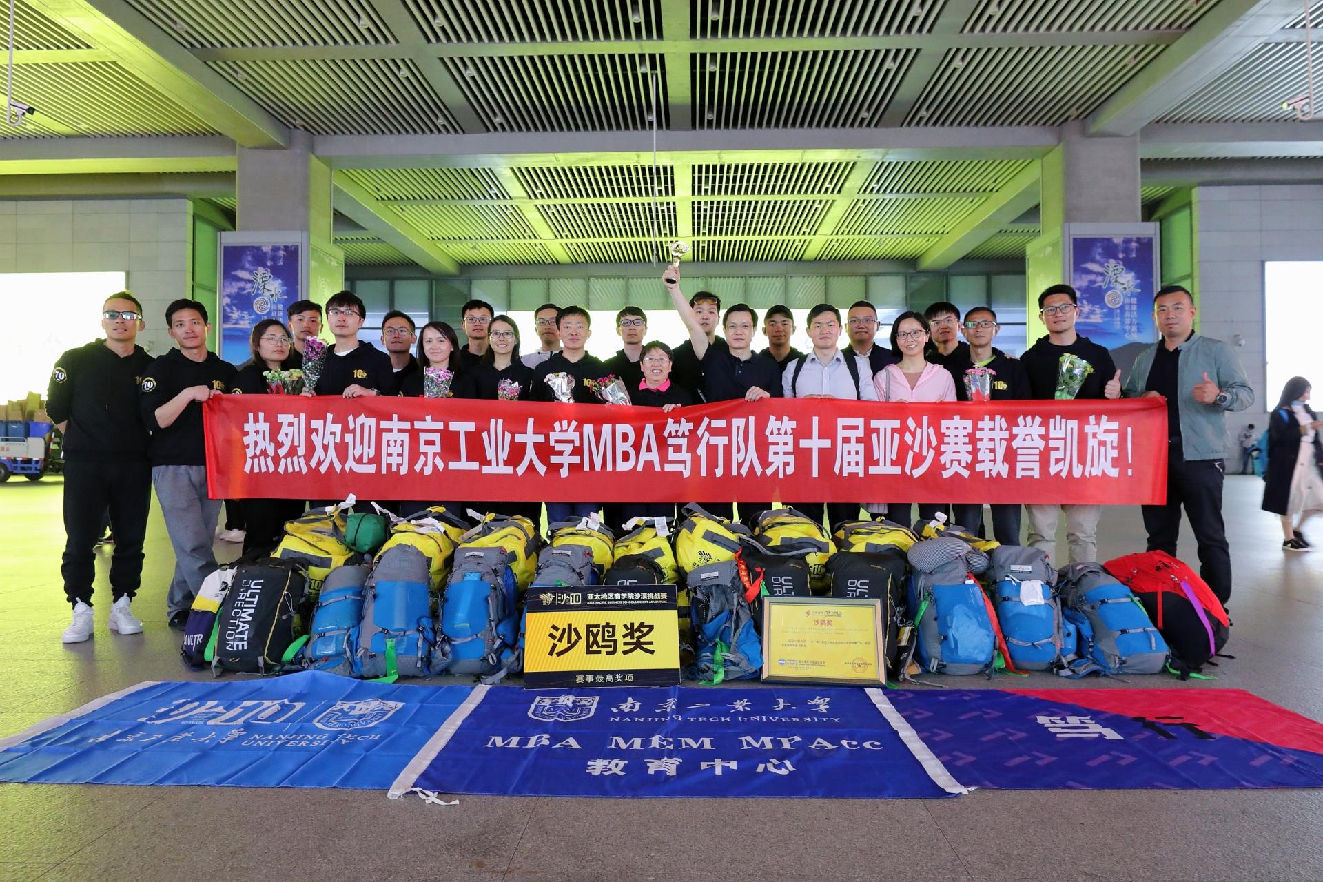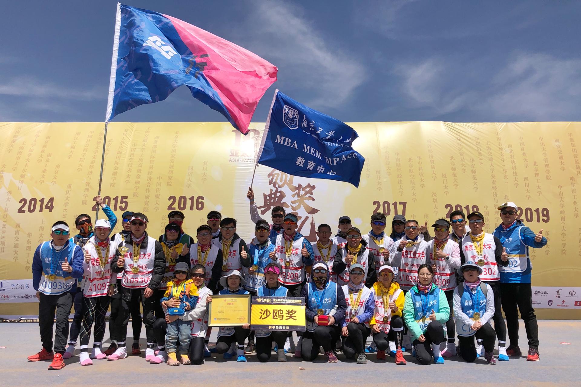 亚沙赛是亚太地区顶级商公司户外赛事被誉为MBA第二课堂,已连续成功举办十届,覆盖50万以上商公司MBA群体。沙十参赛院校121所,参赛人数达4000余人,再创历史之最。所有队员须在规定时间内完成100公里、70公里、36公里不同组别的沙漠徒步越野比赛,体验和践行“环保、协作、坚持、责任”的赛事理念。今年赛事新设“金沙鸥奖”,增设超级A队100公里赛道,须同时满足有超A队员完赛、AB队全员完赛、C队人数超过10人三个条件。“风沙疾雨犹洗面,夜寒昼暑只等闲”,南工大笃行队没有辜负平日的训练,没有屈服赛事的艰苦,历经三日协作拼搏全员完赛勇夺沙鸥,展示了南工大MBA学员风采、彰显了公司MBA品牌与实力。