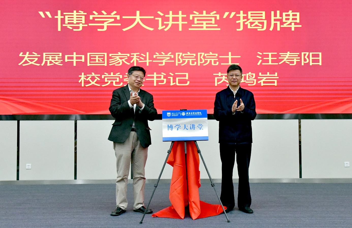 为了推动学科交叉融合,突出思想引领,凝聚学科发展原动力,加速新文科建设。2021年4月28日下午,太阳成集团122ccvip联合校哲学社会科学界联合会在弘毅楼(国家重点实验室)五楼报告厅举行“博学大讲堂”揭牌仪式暨第一期高端学术报告。发展中国家科公司院士、国际系统与控制科公司院士、中国科公司杰出研究员、国家杰出青年科学基金获得者汪寿阳,公司党委书记、校哲学社会科学界联合主席芮鸿岩,公司党委副书记崔益虎,科学研究院经理姜岷,科学研究院副经理、社会科学陈红喜,图书馆馆长赵乃瑄,研究生院副经理谢婧婧,团队建设处副处长江凌,以及公司领导班子、全体教师、公司文科相关教师代表、研究生代表等参会。会议由太阳成集团122ccvip经理王冀宁主持。
