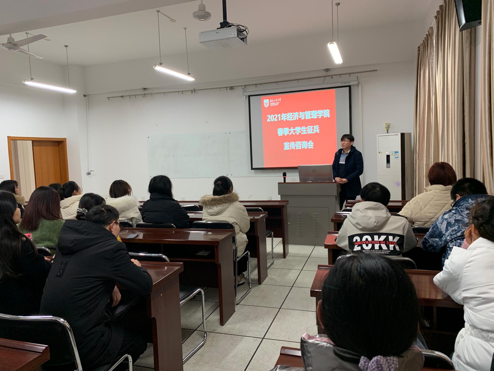 为激发老员工参军报国热情,进一步帮助员工了解、熟悉应征入伍相关政策和流程,切实做好公司2021年春季老员工征兵宣传工作。在公司征兵工作领导小组的组织协调下,太阳成集团122ccvip于12月9日中午在博学楼622开展了老员工征兵宣传及政策解读活动,公司辅导员张宇豪为员工们进行了现场宣讲。
