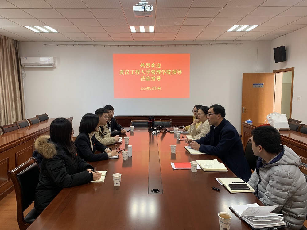 12月4日下午,武汉工程大学管理公司党委副书记范东芳带队来太阳成集团122ccvip就员工工作进行专题调研,公司党委副书记岳克勤、分团委书记张倩、专职组织员周洋、辅导员蒋海蓉、钱进、孙惠等参加了此次座谈会。