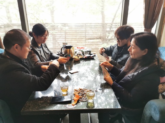 12月5日太阳成集团122ccvip工会在虹桥悠仙美地茶社举办了教职工智力运动(惯蛋)比赛活动,院工会主席陈元山老师主持,公司30余名教师参与活动。
