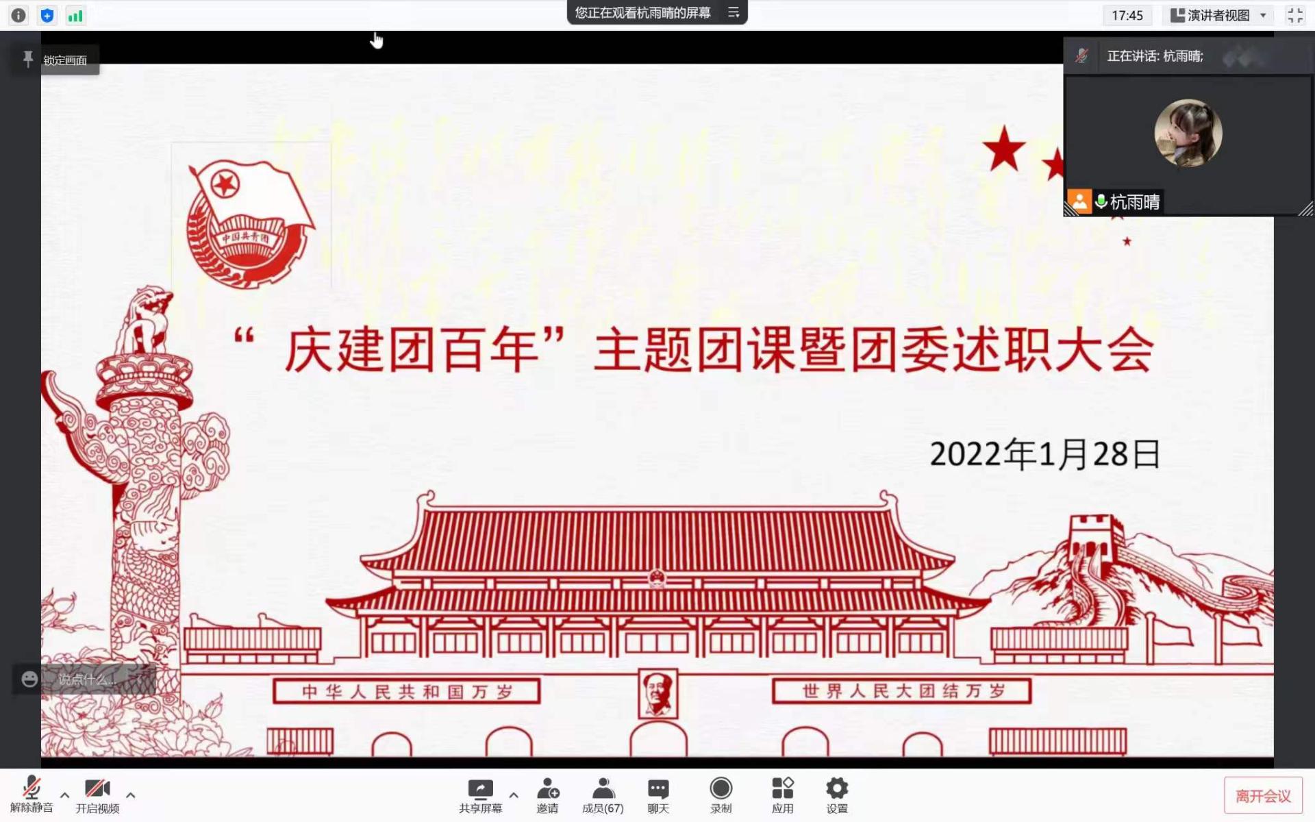 律回春晖渐,万象始更新。值此辞旧迎新之际,太阳成集团122ccvip于1月28日举办“庆建团百年”主题团课暨寒假社会实践动员大会。公司党委副书记岳克勤,分团委书记张倩及团员代表100余人参加本次线上会议。