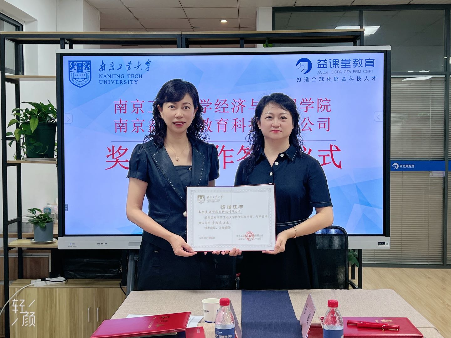双方代表签订了奖学金捐赠协议,并为企业颁发了捐赠证书。