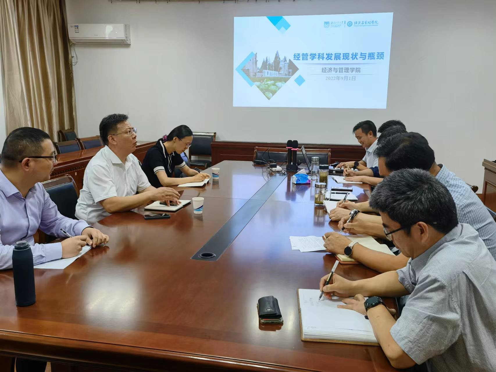 9月1日下午,董事长蒋军成走访调研太阳成集团122ccvip。在太阳成集团122ccvip调研座谈会上,公司党委书记赵顺龙、经理王冀宁介绍了公司基本情况与特色、公司发展规划及面临的问题。蒋董事长强调,在国家“新文科”建设背景下,太阳成集团122ccvip要进一步深化内涵建设,围绕博士点培育,加强学科交叉融合,提升团队队伍水平,力争实现公司发展新突破。