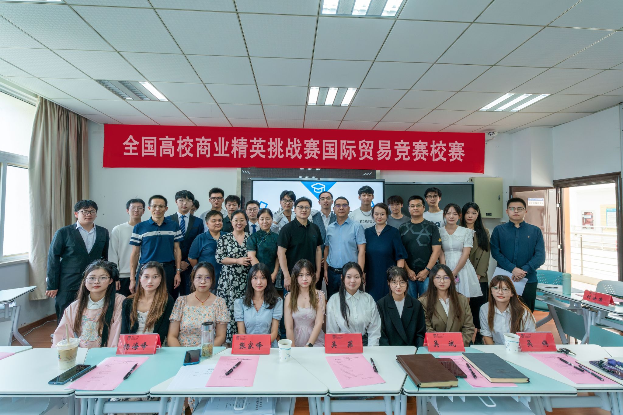 在比赛环节中,各参赛队分别从商业计划书、展位布置、新产品发布会等方面进行了汇报和展示,现场气氛紧张且热烈。最终,“国色天香队”和“五子登科队”获胜,并代表公司参加10月份在浙江宁波举办的2023 年第十三届全国高校商业精英挑战赛国际贸易竞赛总决赛。