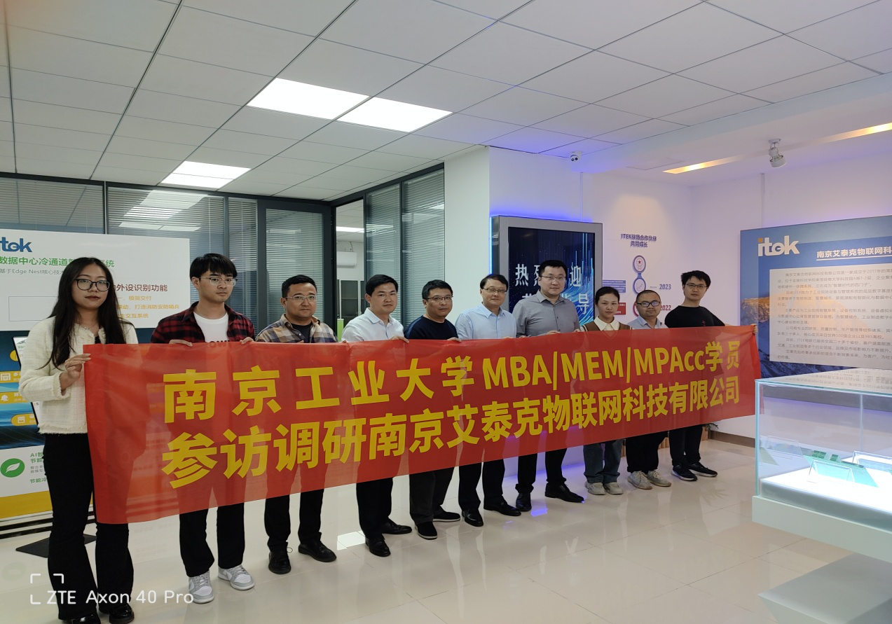 10月14日,案例组来到南京艾泰克物联网科技有限公司,参观了公司的研发产品及研发部门。总经理林业盛先生详细介绍了公司数据运用、工业空调控制、电力运维、能源效能管理系统等业务,以及目前的行业状况和企业所处的发展阶段,介绍了公司从做项目——做产品——做服务——做生态的发展经历和发展思路。副总经理李剑先生为调研师生介绍了公司技术创新、市场拓展、应用场景拓展、人员规模和人才引进、营商环境、面临的困难和挑战等情况。两位领导还详细回答了公司师生关于外部市场联系、技术产品开发、组织人员管理、产品应用拓展、企业融资发展等问题。校企双方围绕调研主题进行了开放而愉快地探讨,达成了案例分析合作意愿。