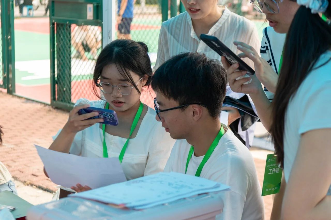 鲜艳的“红马甲”和院研会、员工会的各部门成员