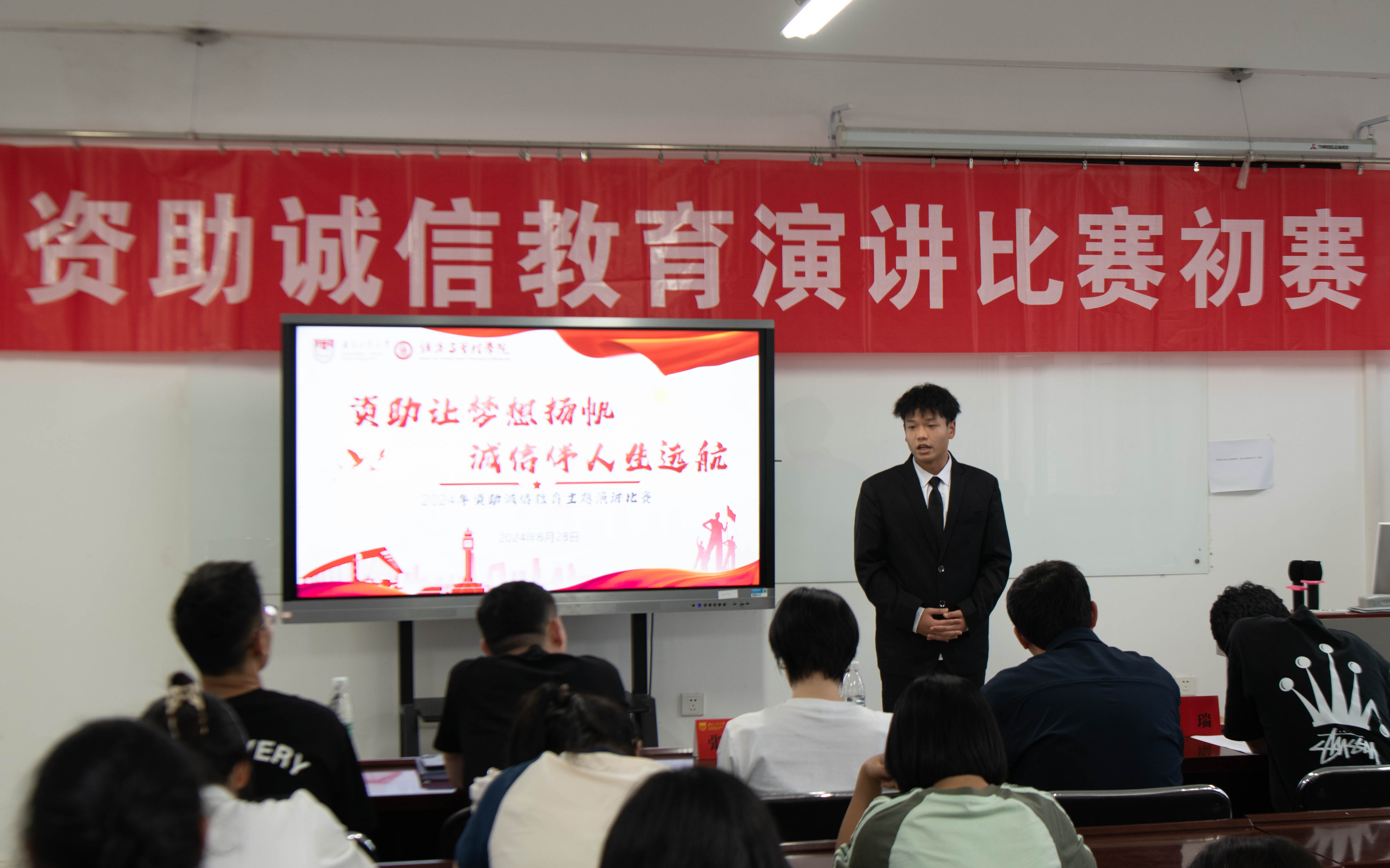为扎实推进“三全育人”综合改革,提升公司资助育人实效,6月28日下午,由学工处主办,公司承办的校资助诚信教育演讲比赛初赛在文科楼622圆满落幕。校学工处资助科张晨曦、太阳成集团122ccvip团委书记张倩、副书记高瑞、辅导员高峰、高烨等参加本次活动。