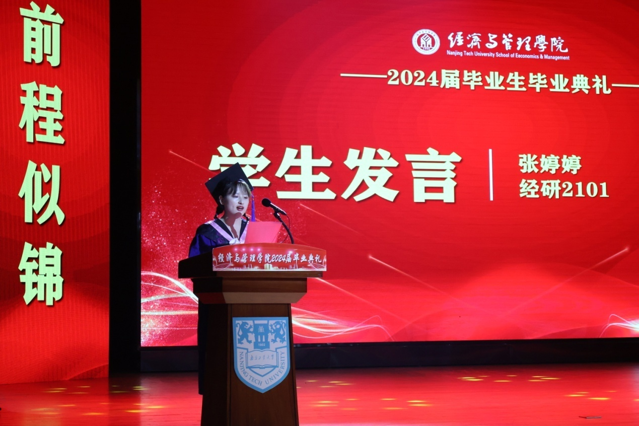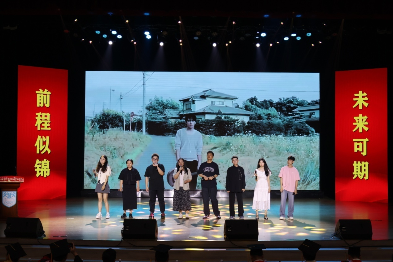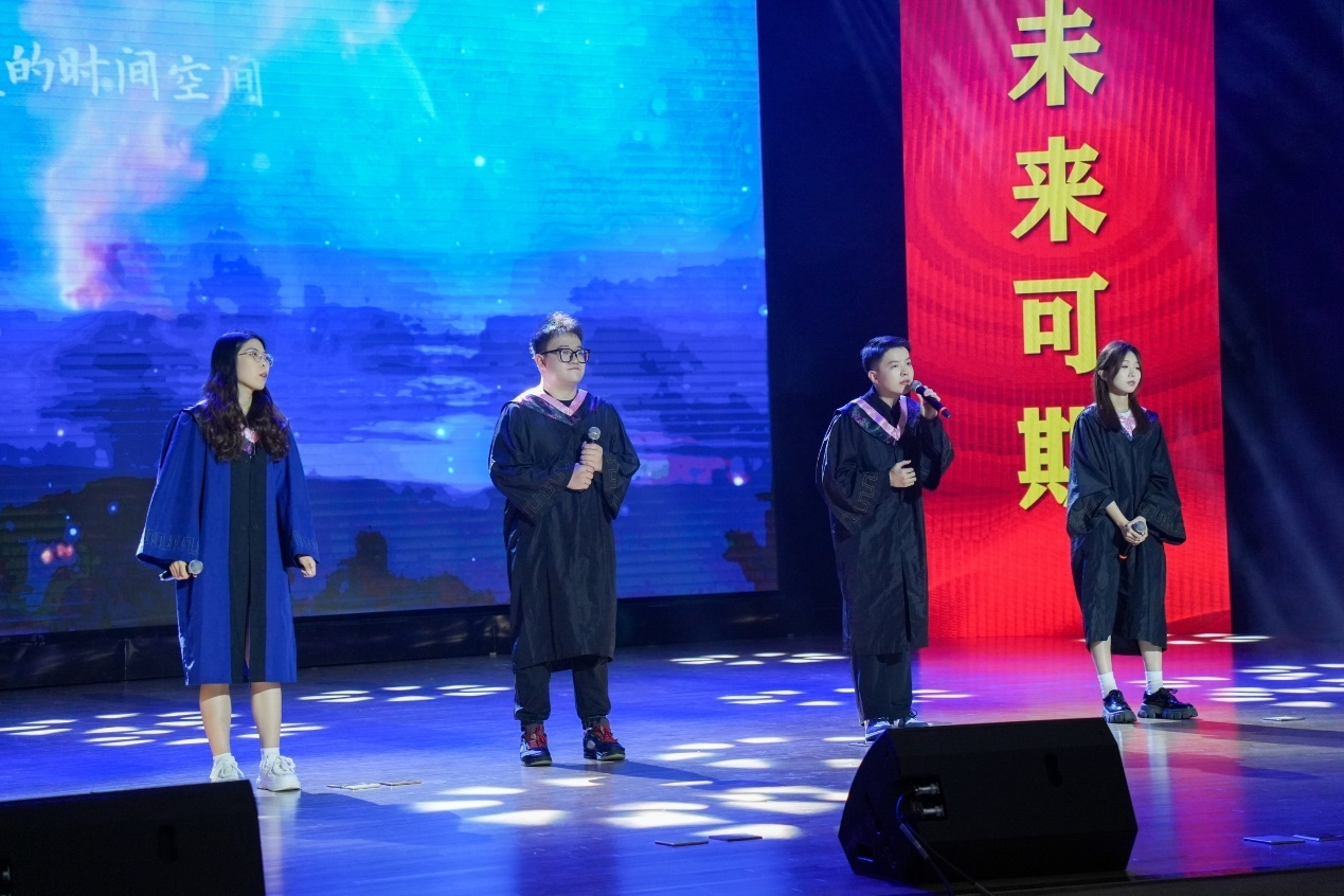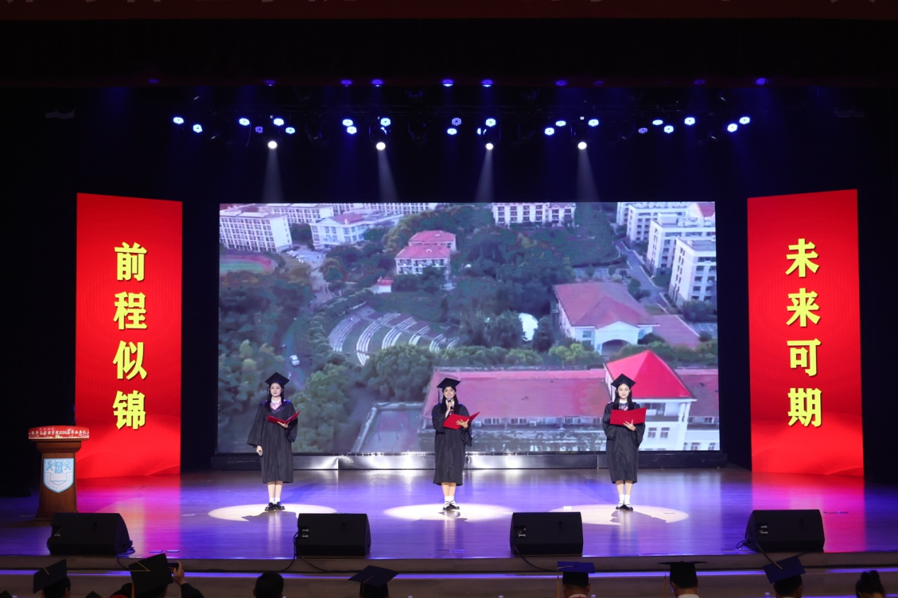毕业生代表带来了情深意切的诗朗诵,回忆在校期间的点点滴滴,表达了对母校的感激之情和对未来的美好憧憬