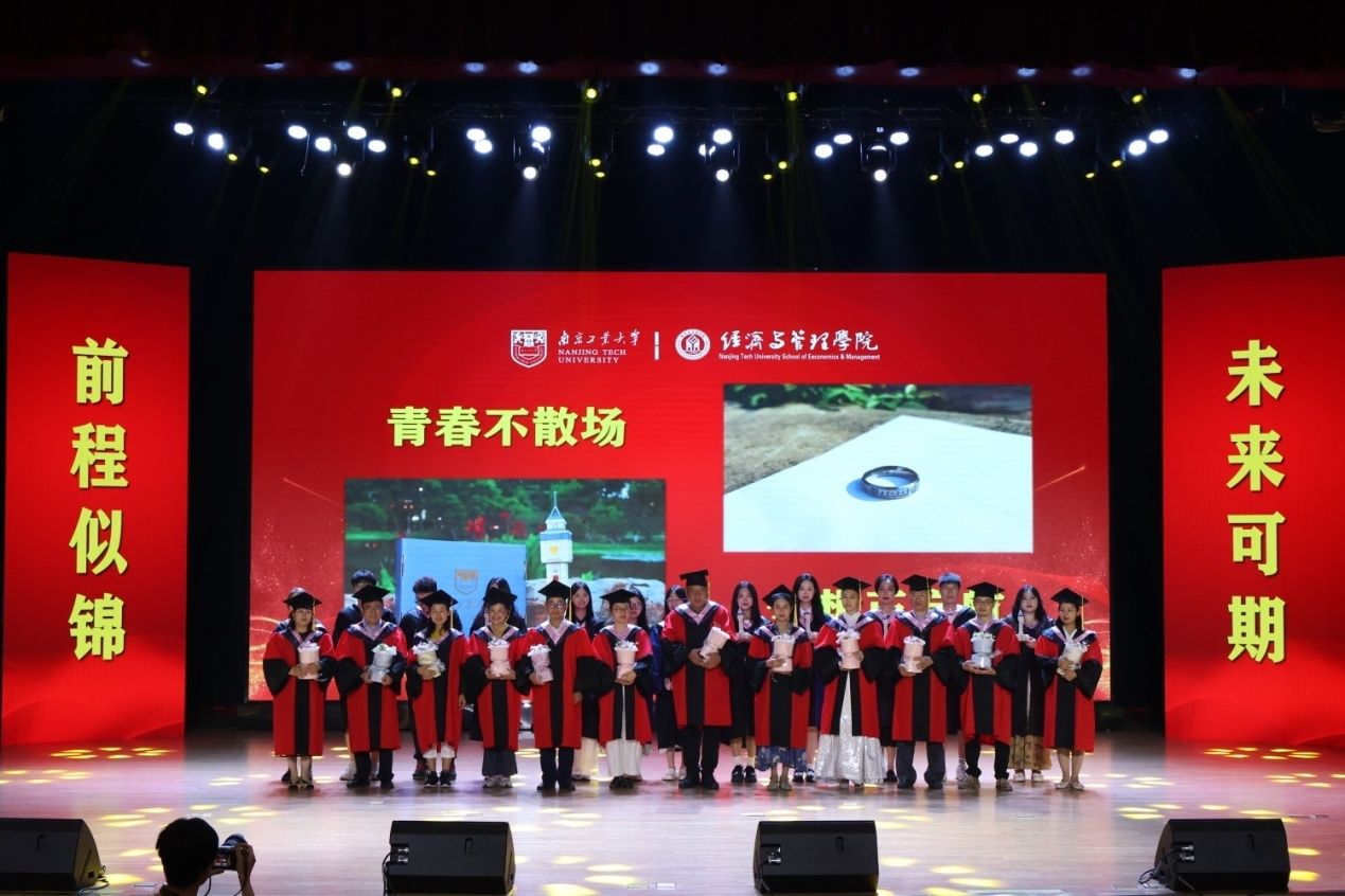 员工为教师献上鲜花,感谢老师的培育。公司赠与毕业生礼物——南工大水塔模型和定制纪念戒指,象征成长见证和情感纽带,更承载着公司对毕业生们的祝福和期望