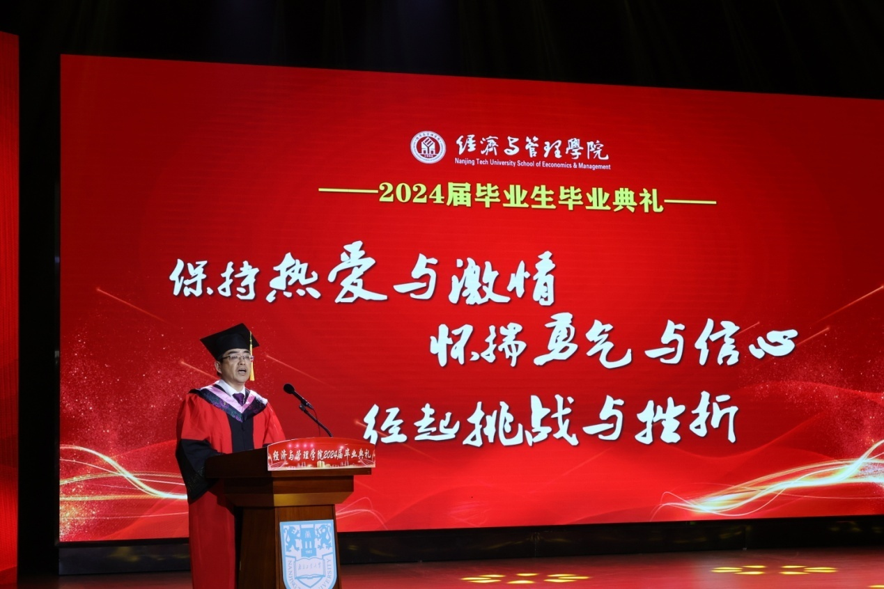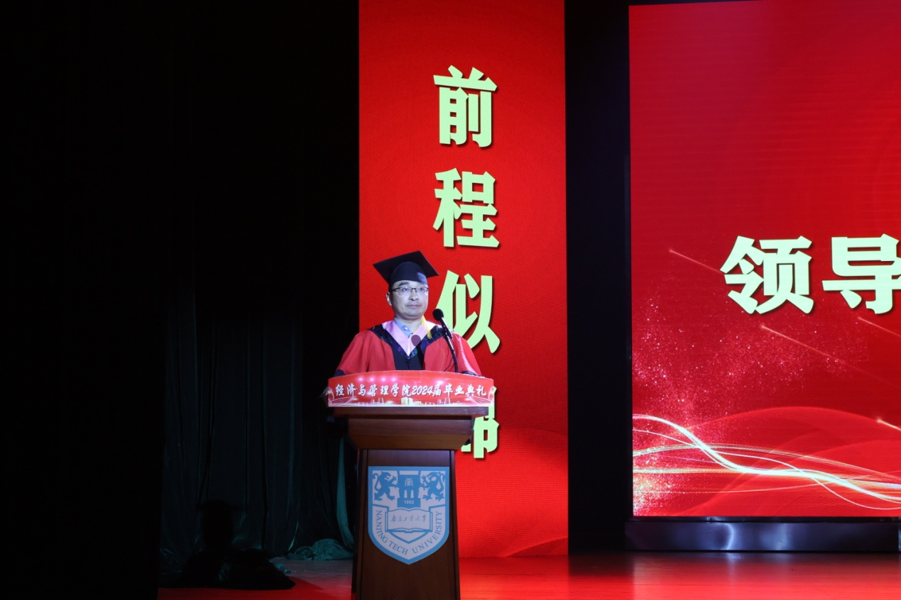书记陈同扬赠言毕业生,希望同学们保持热爱和激情,怀揣勇气与信心,经起挑战与挫折,让时代为同学们加冕!