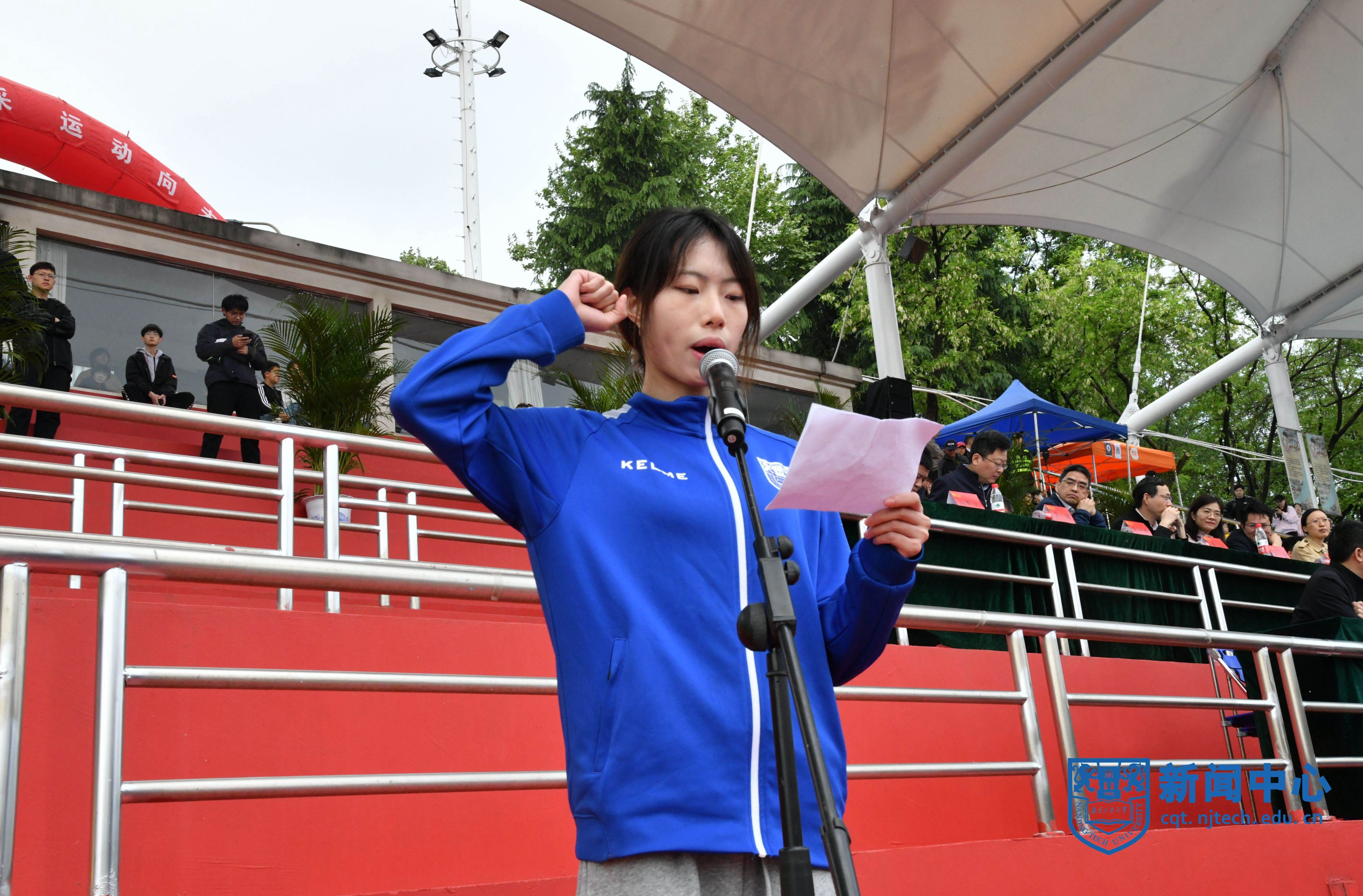 太阳成集团122ccvip人资2202班李歆钰同学代表全体运动员宣誓