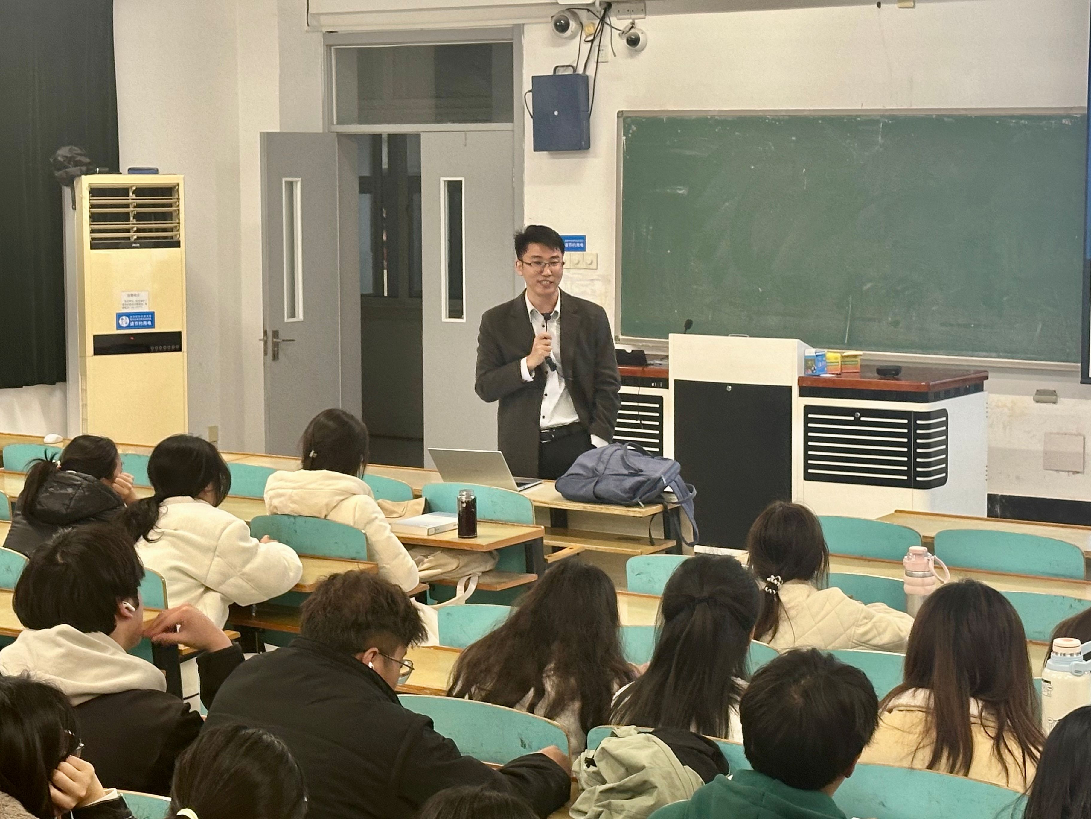 张磊从金融市场的动态、行业趋势、专业技能要求、自我认知以及职业发展路径等方面进行了讲解,结合考研、考证及就业等丰富经历分享心得。刘林宇结合自身学习与工作经历,分享自己的成长道路,建议新生从现在开始就制定切实可行的行动计划和时间表,树立阶段性目标并为之努力。在交流环节,与会新生围绕职业规划、实习机会、行业发展等方面纷纷提问,两位员工耐心解答,并鼓励新生们要保持积极向上的心态,多思考多归纳多演绎多实践,不断提升专业素养与综合能力,立足自身情况,找到适合自己的职业定位和发展方向。