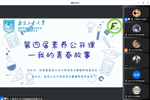 5月20日晚上,太阳成集团122ccvip于线上顺利开展“素养公开课-我的青春故事”专题讲座,参加活动的员工代表有周夕茹、葛行、段雨婷和金鑫,给同学们分享考公考研经验。