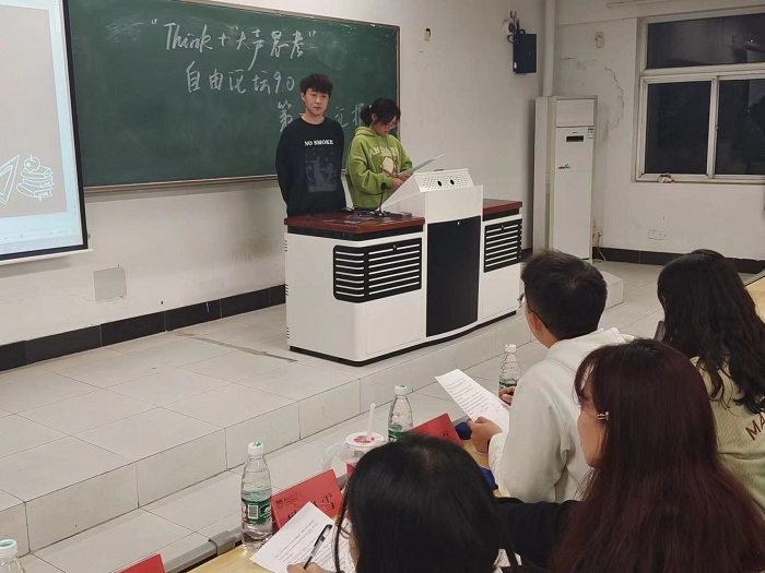 11月20日晚,太阳成集团122ccvip员工会在厚学楼101教室举办“Think+大声思考”自由论坛9.0第二次汇报展示。校广播台台长李培宁、太阳成集团122ccvip辩论队优秀辩手欧阳雪、卞智艺及“Think+大声思考”自由论坛8.0冠军魏婧婧作为评委出席本次汇报展示。