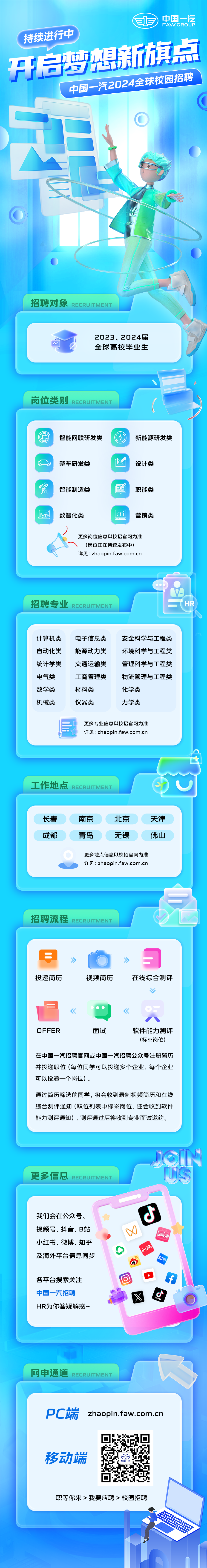 【2024职向未来】中国一汽2024全球校园招聘(管工类、工商类、物流类、)