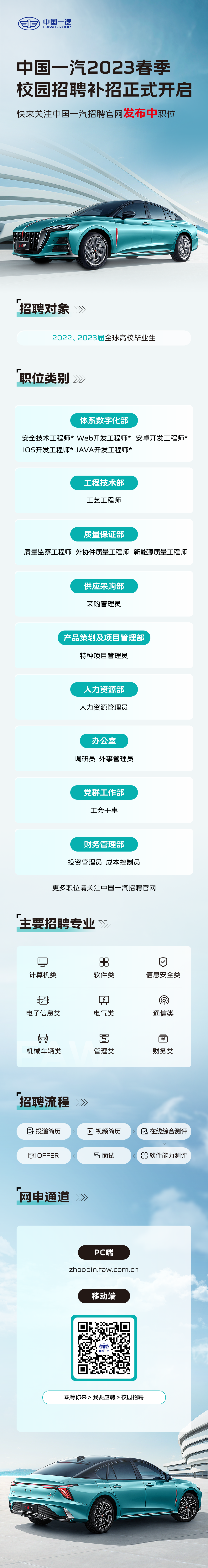 【2023职向未来】中国一汽2023春季校园招聘补招正式开启