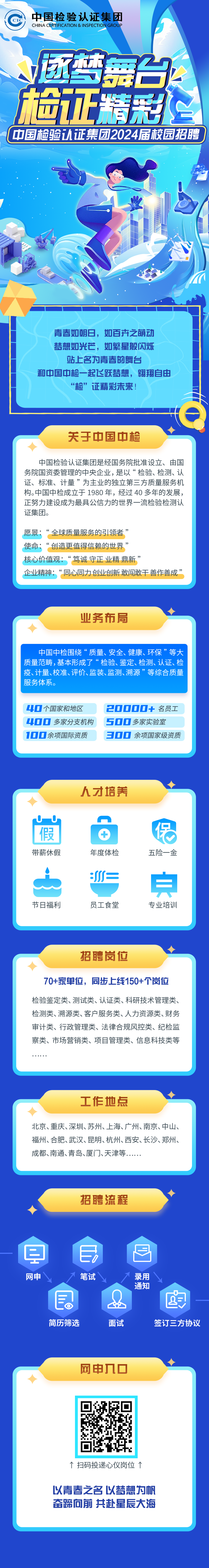 【2024职向未来】中国检验认证集团2024届校园招聘(人资、财务、营销、信管等)