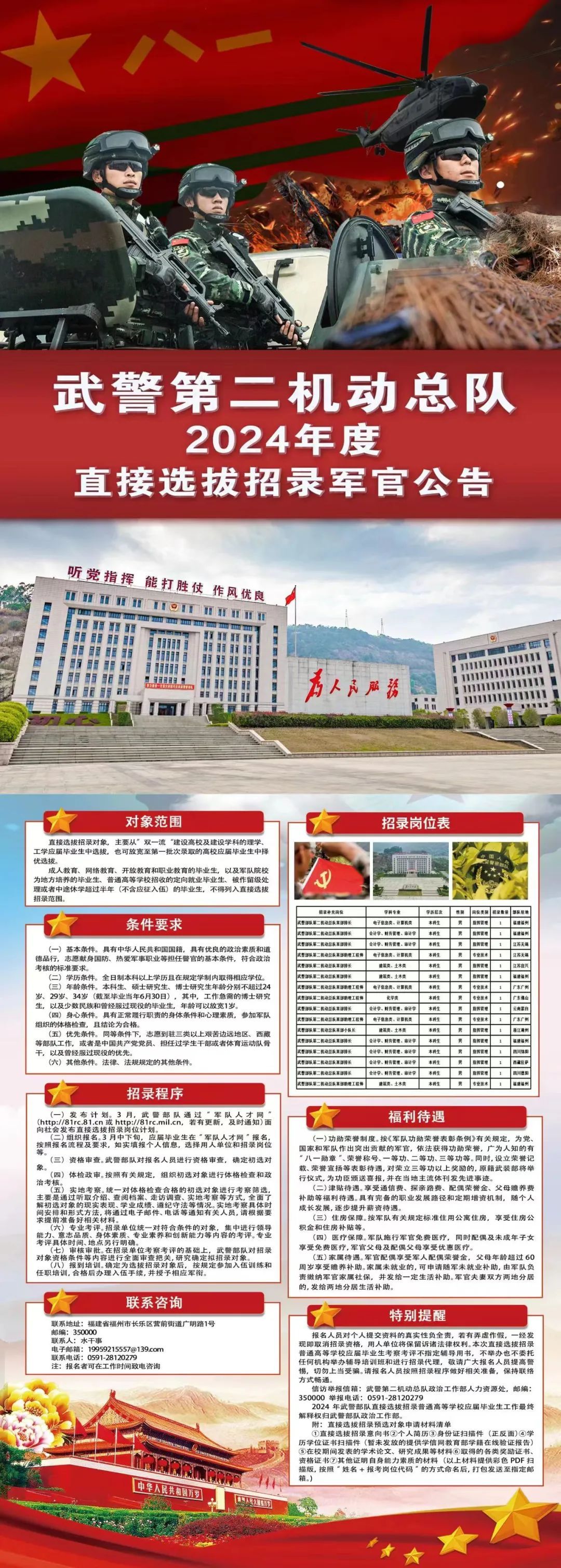 【2024职向未来】武警第二机动总队2024年度直接选拔招录军官公告(会计等)